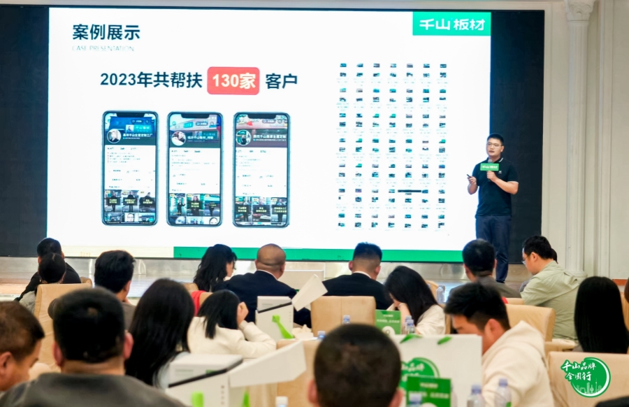 千山板材大區(qū)經(jīng)理王殿忠為大家分享了《新媒體運營獲客》,向大家展示了千山板材優(yōu)秀經(jīng)銷商的短視頻賬號實例,對標簽內(nèi)容進行剖析,鼓勵大家勇于提升新媒體運營能力,挖掘線上客戶,助力終端銷售。
