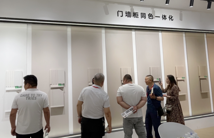 千山板材擁有的內(nèi)直外圓陽角、L型、U型(抽屜)、圓柱、門套9大規(guī)格圓弧產(chǎn)品,同步15款花色,充分滿足不同的應(yīng)用場景,成為展會現(xiàn)場炙手可熱的門墻柜一體化產(chǎn)品。