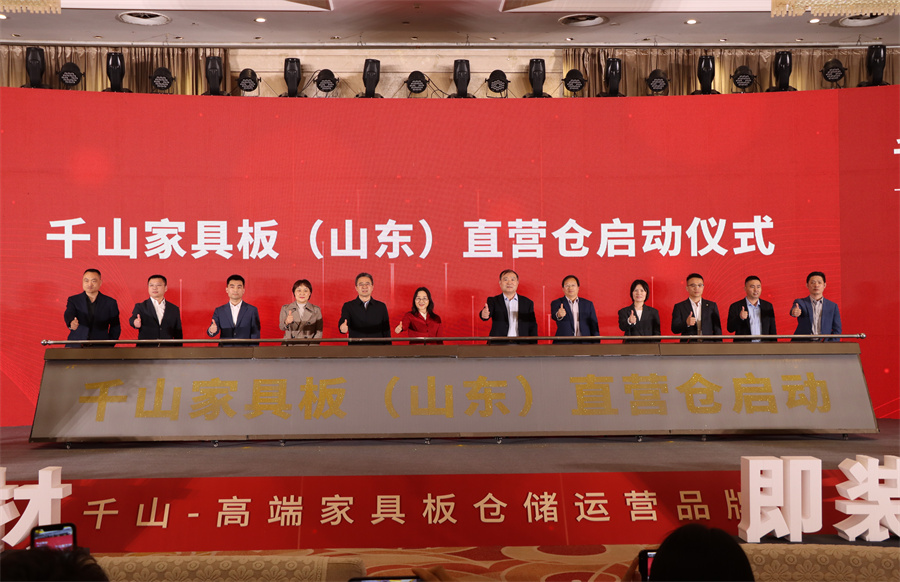 2023年4月,以“聚焦行業新藍海 共創千山新時代”為主題的千山2023全國經銷商大會暨千山家具板(山東)直營倉啟動在總部山東臨沂盛大舉行,千山家具板山東直營倉正式起航,實力開啟千山發展的新征程。