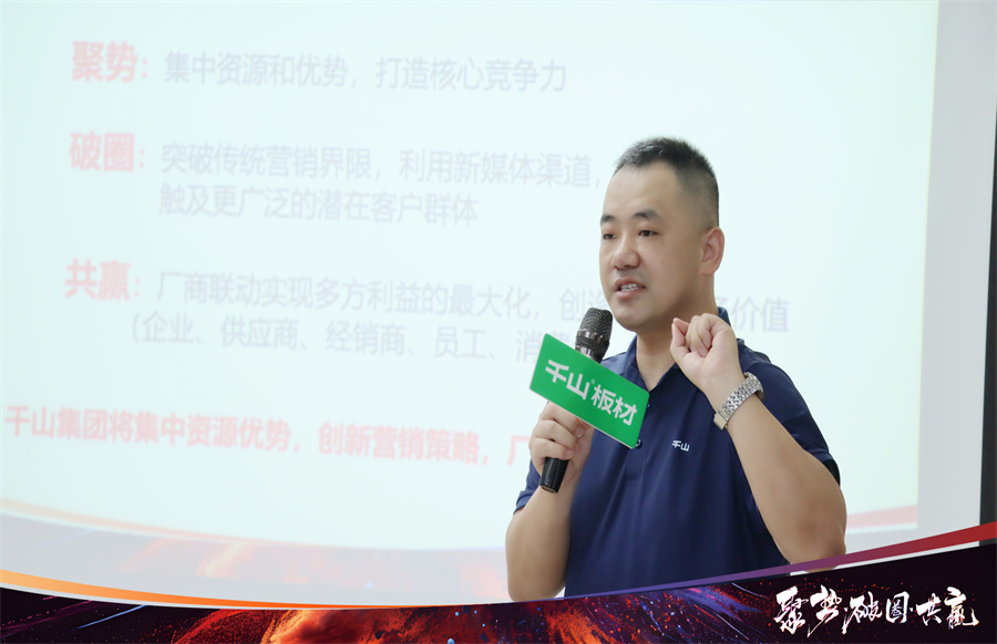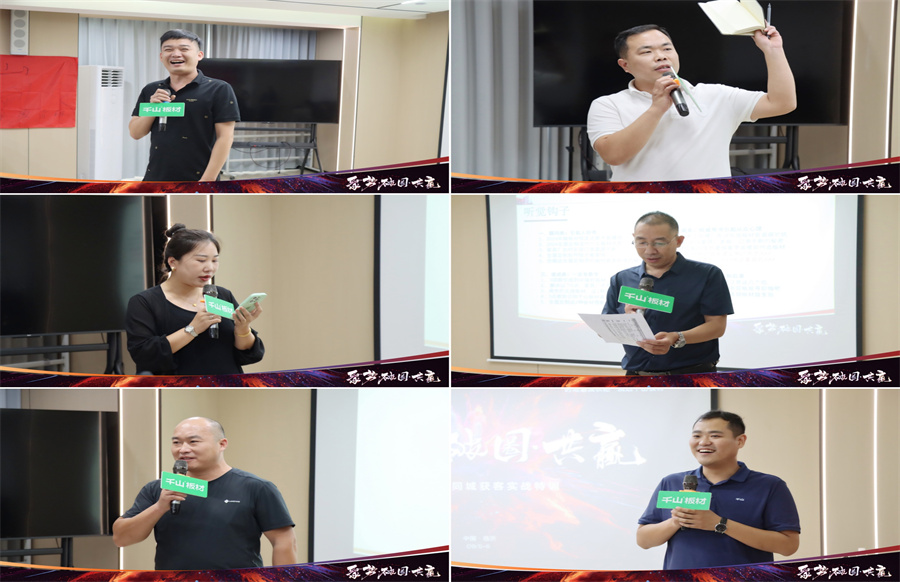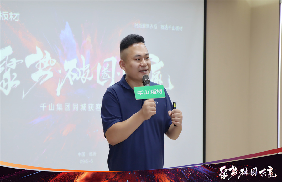在開營致辭中,千山板材山東倉總經理楊秀山首先對來到總部學習的伙伴們表示熱烈歡迎!楊總分享到,面對劣幣驅逐良幣的激烈競爭環境,破局向上、流量打造勢在必行。如今是短視頻和直播時代,大家要提高自身專業度,布局線上渠道,驅動增長。也希望家人們把握學習好時機,滿載而歸。