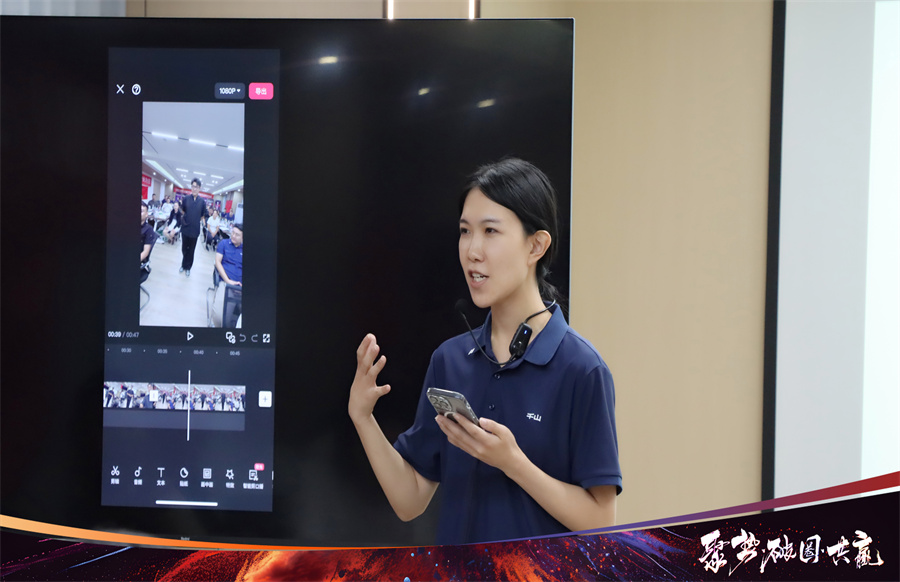 千山商學院剪輯講師景琳樾給大家分享了短視頻的剪輯方法,現場操作演示剪映的功能和剪輯手法,包括剪輯結構、音效字幕處理、轉場特效等,為伙伴們帶來直觀且實用的學習體驗。
