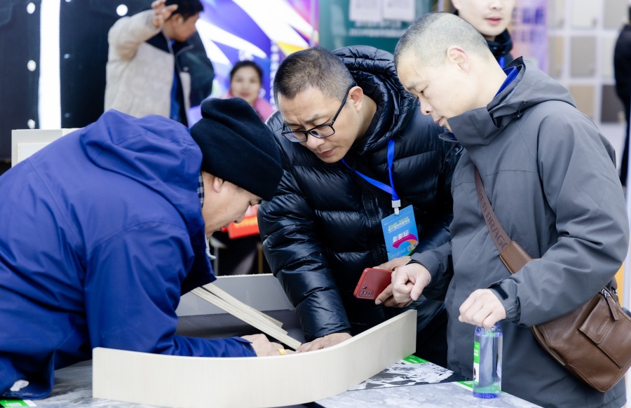 開展首日,千山板材展位現場熱鬧非凡,人頭攢動,眾多觀展客商前來展館一探究竟。千山板材以強勢姿態,打響展會首日開門紅