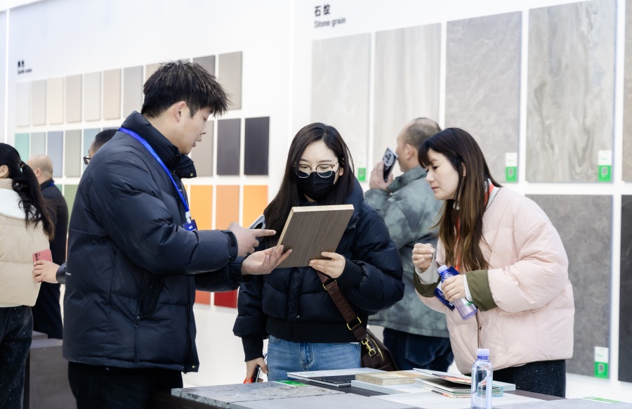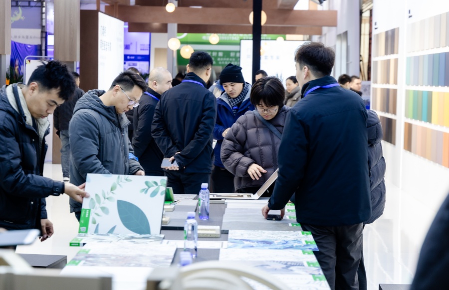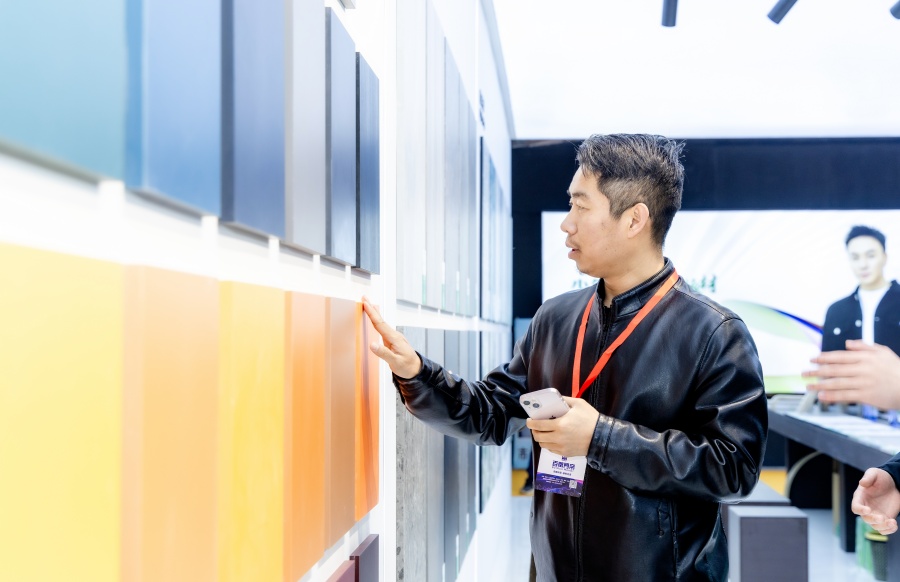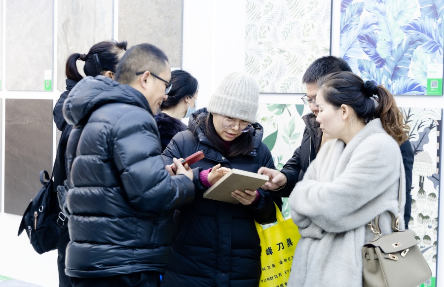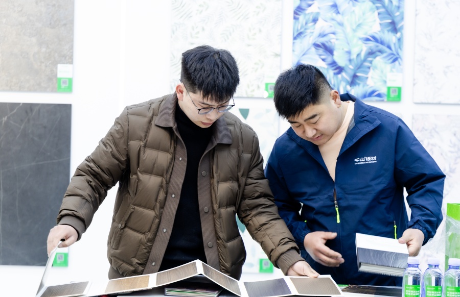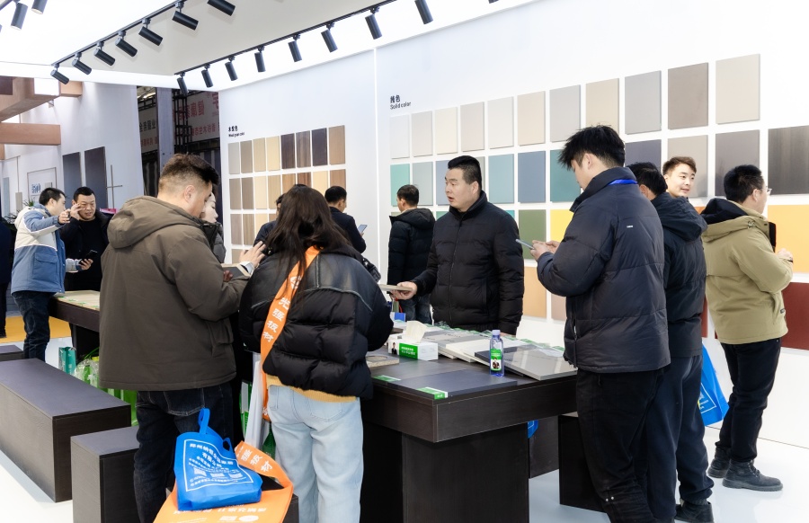 千山板材帶來2025年度新品系列花色,7大系列119款時尚潮流花色涵蓋優品系列、同步系列、木紋系列、純色系列、石紋系列、數碼系列、PET系列,吸引了眾多客商駐足參觀。
