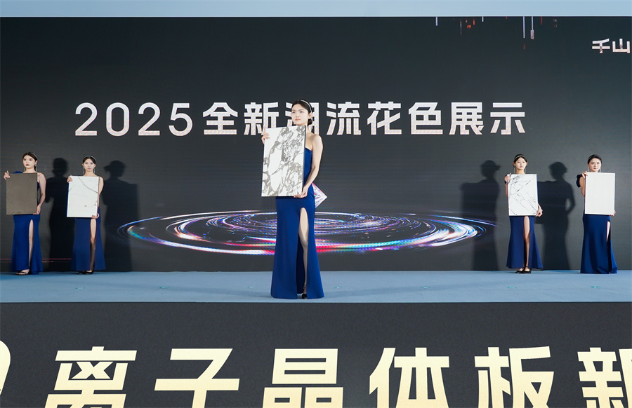領導嘉賓們共同登臺,進行T20離子晶體板首發的啟動儀式。千山T20離子晶體板的正式上市,不僅標志著千山板材正式邁入“離子晶體板”時代,更預示著千山向著更高智造標準跨越式進階