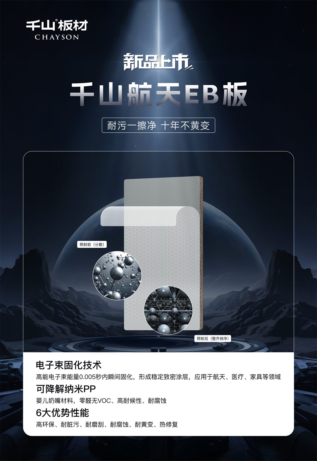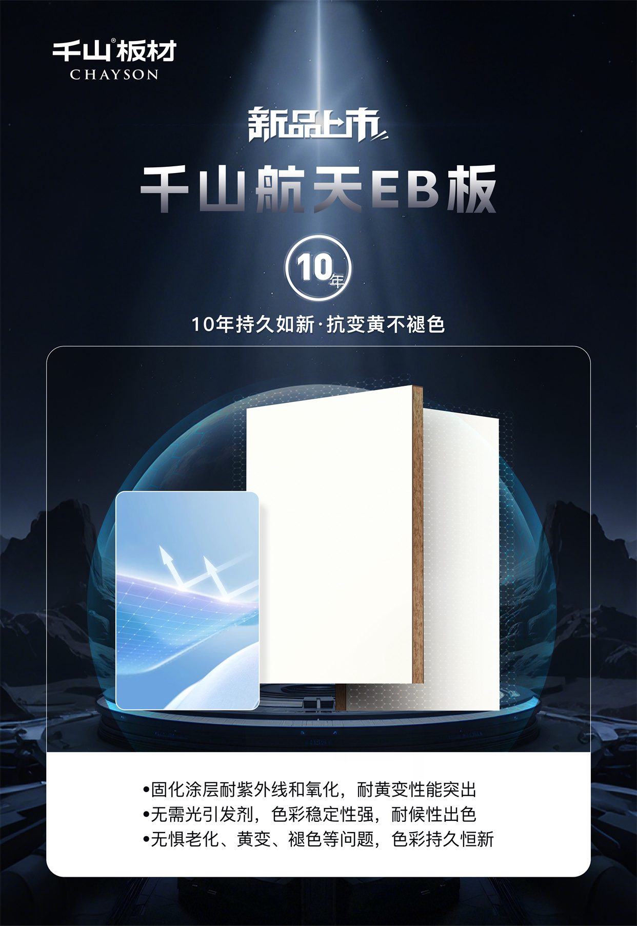 千山航天EB板:耐污一擦凈,十年不黃變!讓黑科技點亮家的奢顏,用高能品質(zhì)守護(hù)健康空間,歡迎當(dāng)?shù)貙Yu店鑒賞咨詢。