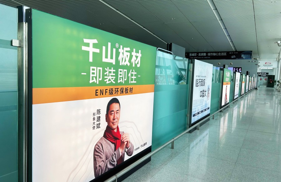 機場作為一個城市或地區對外交流的窗口,具有很深的城市烙印,可以有效展示地區特色和城市形象。為了有效賦能家具廠,加大提升品牌形象,近日,千山以高端品牌形象強勢登陸臨沂機場。借助其高客流量、高影響力,以點帶面,輻射全國。此次機場廣告,呈現在具有強大視覺沖擊力的達廳走廊,11個大型廣告展示牌帶來全新視覺體驗。&nbs